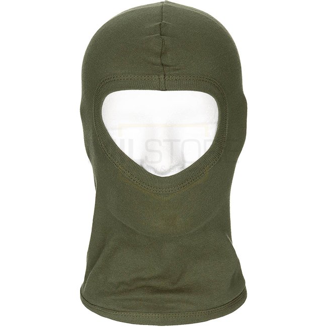Lightweight balaclava with bordered eye hole, elastic jersey fabric - one-size-fits-all. Material: 100% Cotton.