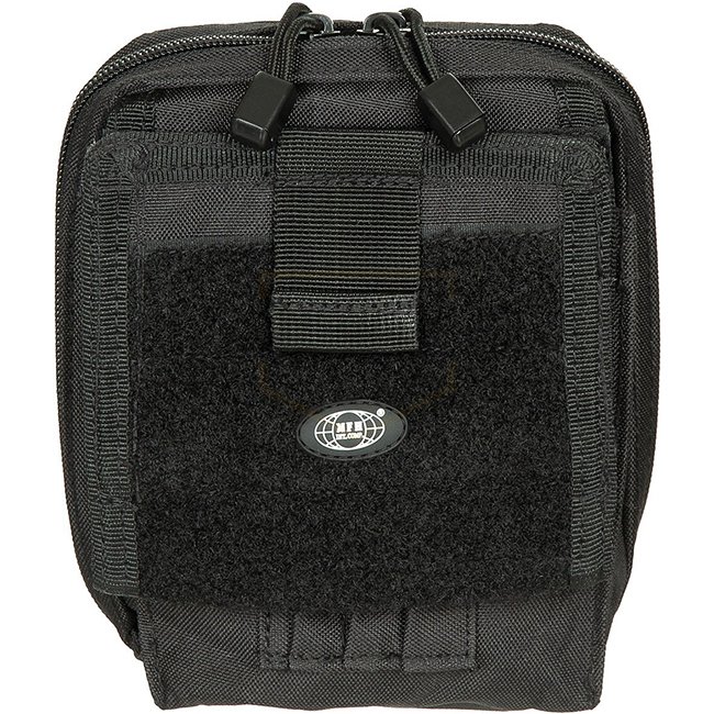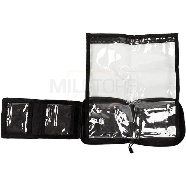 MFH Map Case MOLLE - Black: Foldable map case with large transparent compartment, pen holders, Molle fastening loops, and velcro panel. Made of 100% Polyester.