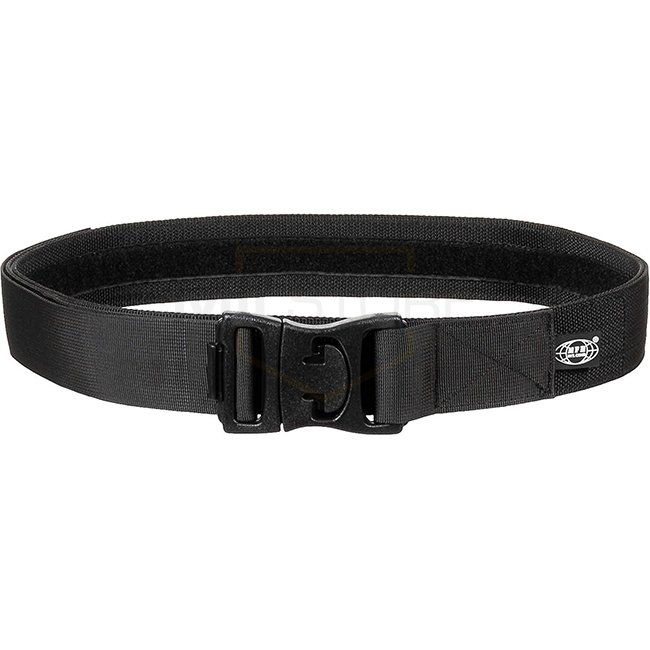 MFH Operation Belt 50mm - Black: Safety lock, length adjustable by velcro from 80 to 110 cm. PVC inside, closure with lock and velcro, velcro panel inside. Material: 100% Polyester.