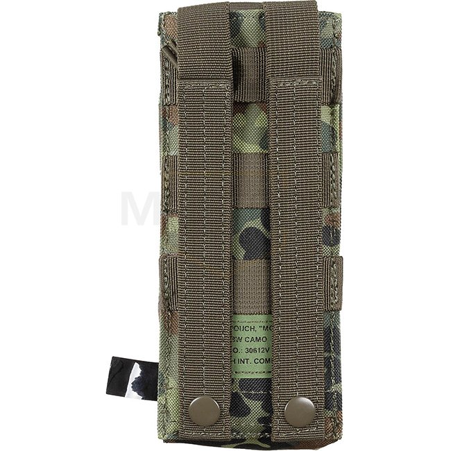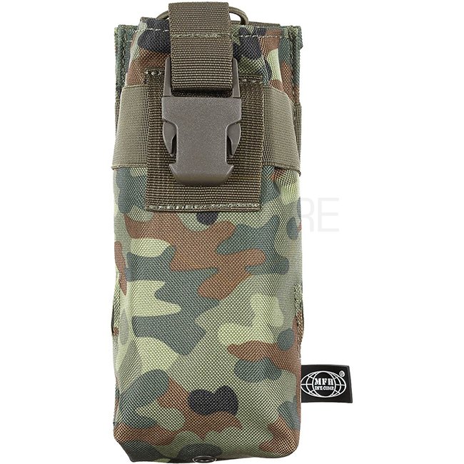 Keep your MFH Radio secure and within easy reach with this MOLLE Radio Pouch in Flecktarn. Features click closure with elastic drawstring, front loop, Molle attachment loops, press button, and more. Dimensions: 9 x 20 x 5 cm, Weight: 130 g. Made of 100% P