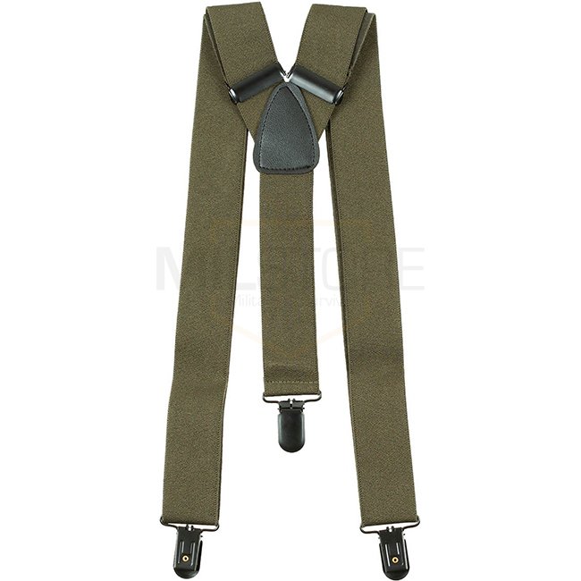 MFH Suspenders - Olive: Y-model elastic suspenders with 3 metal clips, 100% Polyester material.