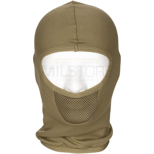 Stay protected and comfortable with the MFH Tactical Balaclava in Coyote. Made with high-quality material, including a mesh mouth area for breathability and moisture-wicking. Features an elastic neckband for a perfect fit, reinforced seams, and one-size-f