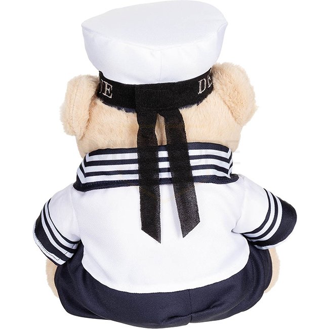 Huggable MFH Teddy Bear 28 cm in marine blue, featuring a hat embroidered with "DEUTSCHE MARINE". Perfect for cuddles and as a patriotic display piece.