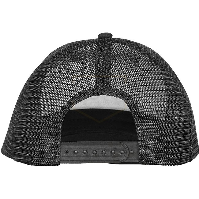Adjustable MFH Trucker Cap in Black. Snapback closure, quilted visor, one-size-fits-all. Material: 60% Cotton, 40% Polyester.