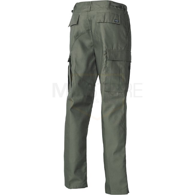 MFH US Combat Pants Reinforced - Olive - 2XL: Classic US ARMY pants with button fly, multiple pockets, adjustable waistband, reinforced knees and seat, and bottom hem adjustable by drawstring. Material: 65% Polyester, 35% Cotton.