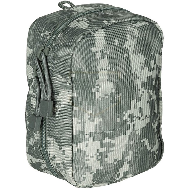 MFH Utility Pouch MOLLE Small - AT Digital. Unfoldable compartment with 2-way zip, lateral elastic connections, and Molle attachment loops. Dimensions: ca. 15 x 19 x 7 cm (W x H x D). Weight: ca. 180 g. Material: 100% Polyester.