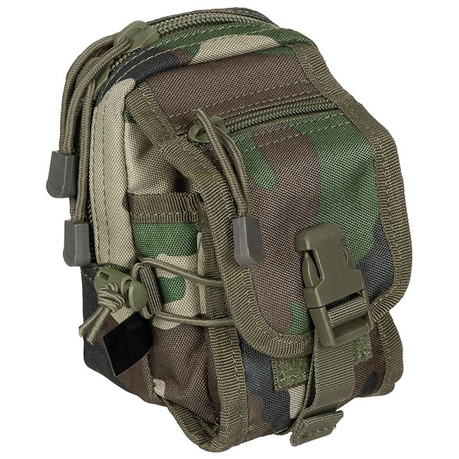 The MFH Utility Pouch MOLLE in Woodland is a versatile accessory for organizing your essentials. With a main compartment, front pocket, and various pockets for easy access, this 100% polyester pouch is perfect for keeping your small items secure and withi