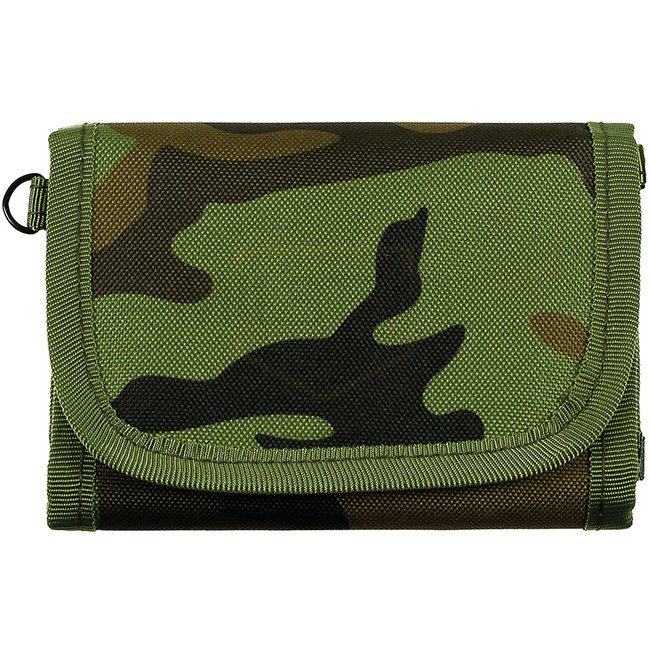 MFH Wallet M95 CZ Camo - Completely unfoldable with velcro, 2 note compartments, 7 slide-in compartments for cards, 1 coin compartment, 1 ID card compartment, small metal D-ring outside. Dimensions: ca. 12 x 9.5 x 2 cm. Material: 100% Polyester.