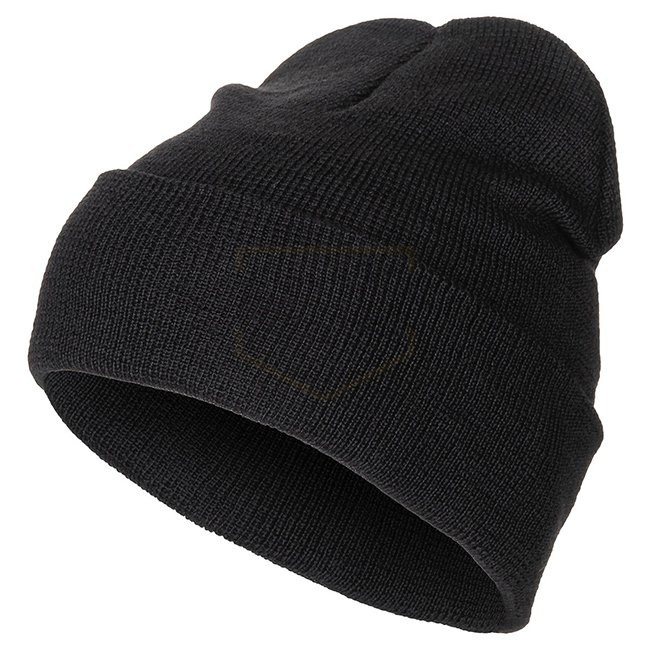Fine knit wool watch hat in black with broad fold-over brim. Two-layer design and one-size-fits-all. Made of 100% Wool.