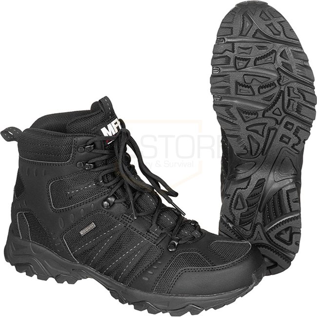 High-quality combat boots with waterproof and breathable HBR membrane. Quick-drying material, excellent running properties. Anti-skidding sole with lifted toe area for protection against boulders. Padded bootleg and tongue, replacable inner sole. Two-zone