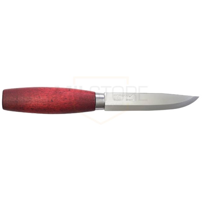 Morakniv Classic No 2 with high carbon steel blade in red Ochr. Lightweight, with a 105mm blade length and total length of 215mm. Perfect for various outdoor activities. Blade made of Carbon Steel with a wooden handle.