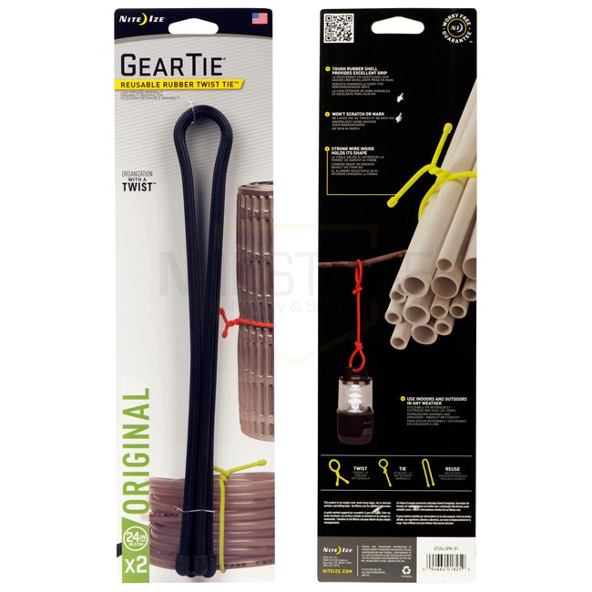 The Nite Ize Gear Tie is made of a strong, flexible rubber-covered wire, is reusable, waterproof and can be used for tying and organizing cords, cables, tools and other items. Set includes two 24" Gear Ties.
