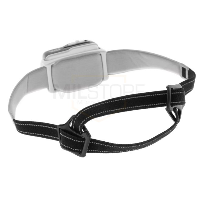 Adjustable headband for comfort during dynamic activities, with a reflective strip for visibility.