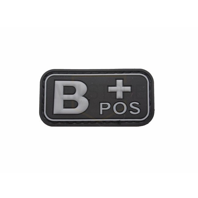 A compact and durable Pitchfork Blood Type B POS Patch - Swat measuring 50 x 25mm.