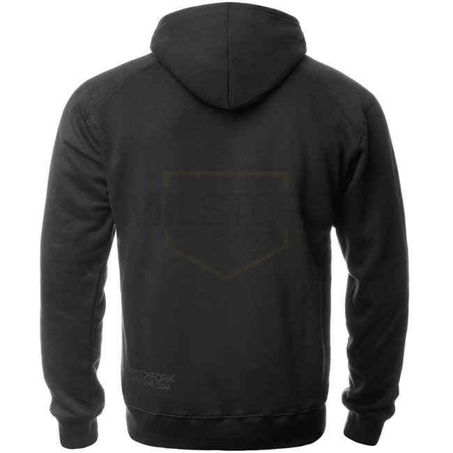 Pitchfork Casual Hoodie Black Print - Black - 2XL: Trident chest print, PFS logo on the back. Comfortable loose cut from 70/30 cotton-polyester blend for warmth.