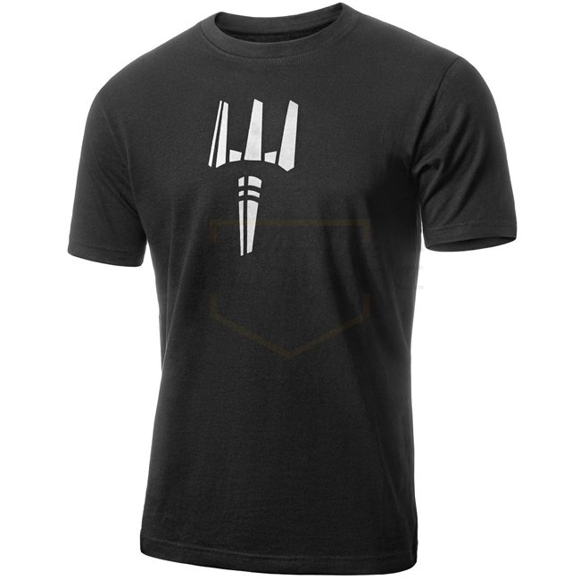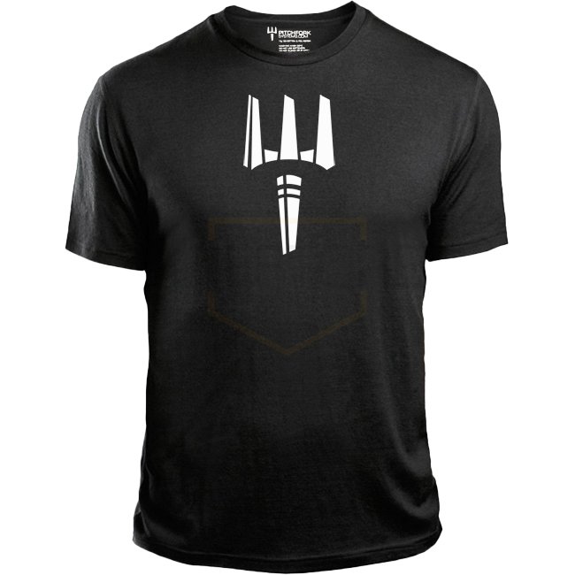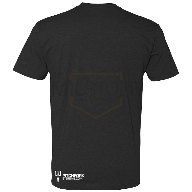 Pitchfork Casual T-Shirt White Print - Black - XL: Big trident centered at chest height and smaller PFS logo on the back. Semi-tight cut from 50/30 cotton-polyester blend for optimal comfort. European sizing with tight collar and sleeves.