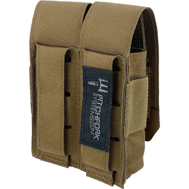 The Closed Double Pistol Magazine Pouch can hold the usual double-stack pistol magazines, even wider .45 cal. magazines fit. Single-stack magazines also fit in but don’t sit tight. For a better grip on the magazine the pouch features an elastic band around it. The highly resistant and slightly elastic Hypalon end tab simplifies opening, even when wearing gloves.