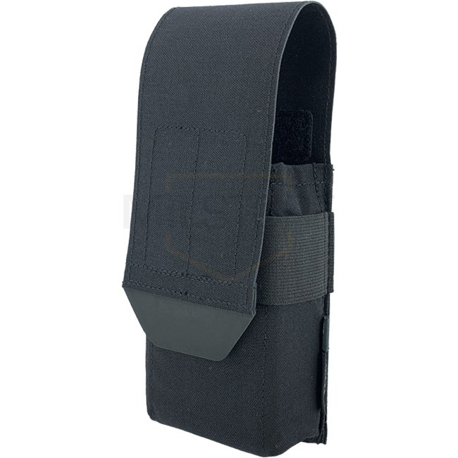 The Pitchfork Closed Single AK Magazine Pouch in Black is perfect for AK47 or AK74 mags. It can hold one or two magazines with an elastic band for grip and a Hypalon end tab for easy opening. Made with Cordura 500D and LaserCut laminate for durability, it