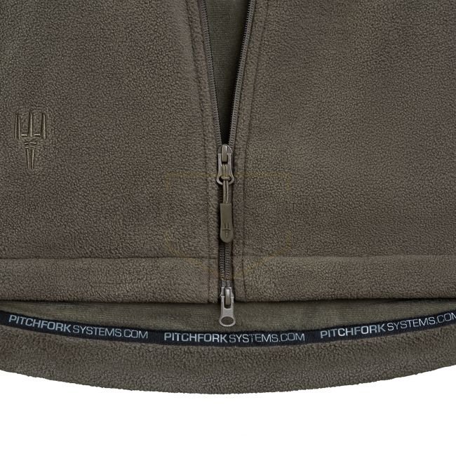 All components were specially developed for the FAHRIUS heavy fleece jacket and matched in color to other PITCHFORK Systems products in the same colorway. Details such as the loop surfaces, zippers or the elaborately embroidered Trident logos fit perfectly with the main material. The result is a visually uniform and discreet appearance, making the jacket suitable for a variety of activities.