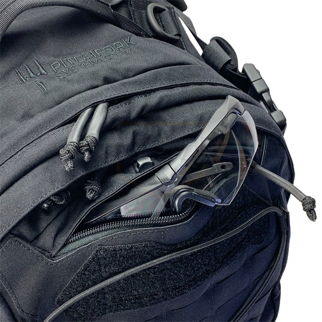 The shoulder straps come with small hook & loop rectangle on the front to attach a country or ID patch, a fully adjustable sternum strap as well as fast-release buckles to take off the pack. Laser-cut MOLLE surfaces provide additional installation space for pouches and accessories like a compass or other items you may need access to. Vertical slits can be used to install loops for holding a hydration tube or cables in place.