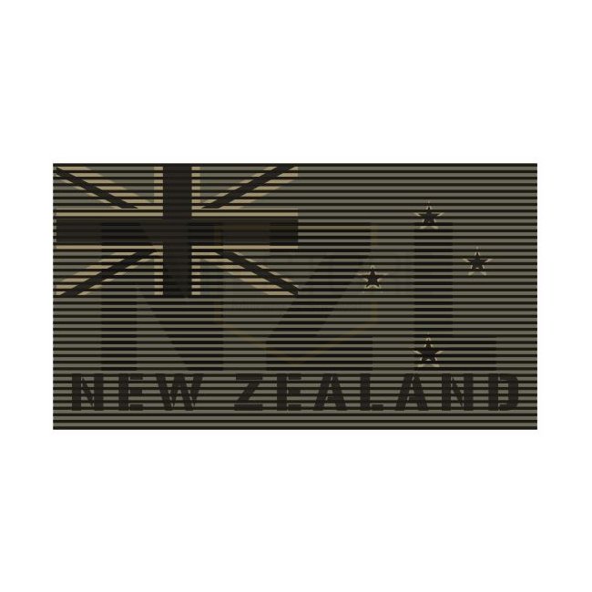 This Pitchfork New Zealand IR Dual Patch in Ranger Green features a front made of IR foil and printed design, while the back boasts a hook surface. It measures 90 x 50 mm.
