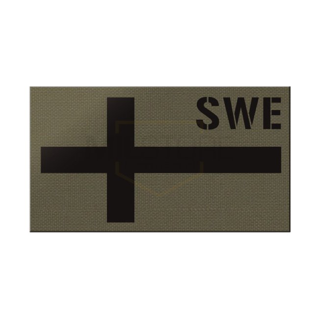 Pitchfork Sweden IR Print Patch - Ranger Green. Front: IR foil, printed. Back: Hook surface. Dimensions: 90 x 50 mm.