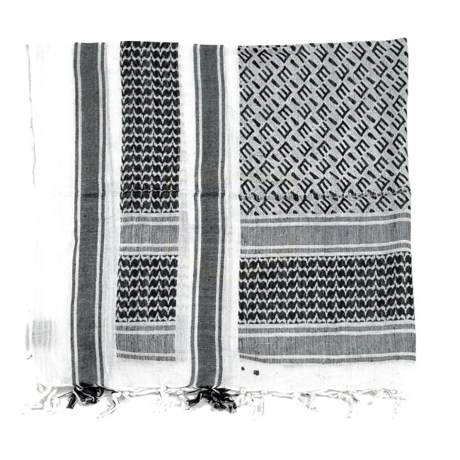 Stay stylish with the Pitchfork The Shemagh Trident Logo in classic white. High-quality 100% cotton material with woven colors and patterns for long-lasting vibrance. Dimensions: 100 x 100cm.