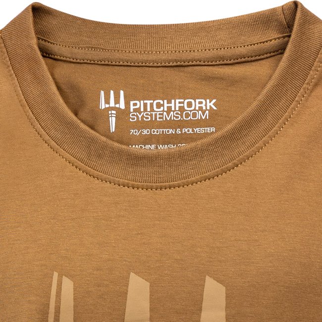 Trident Print T-Shirt - Coyote - 2XL. Large trident centered at chest height with a small trident on the back. Semi-tight cut for a good fit, made from a cotton-polyester blend. Functionality through simplicity.