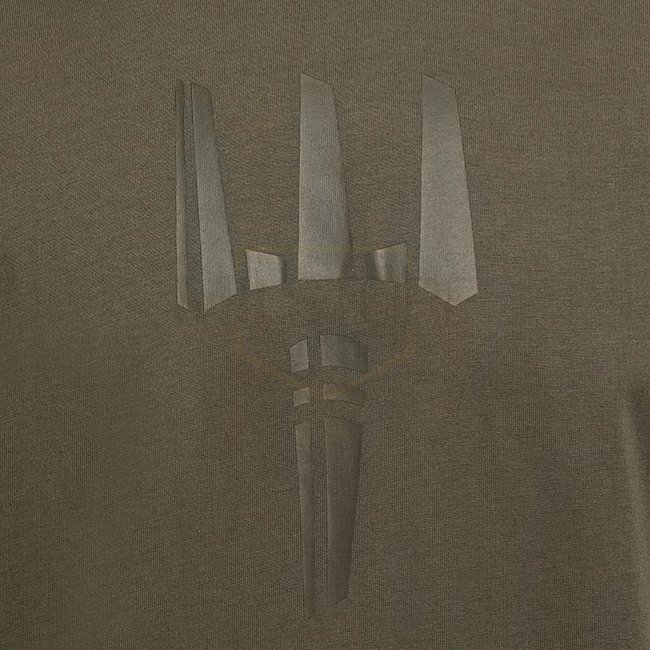 Large trident centered at chest height, small trident on the back in the neck area. Semi-tight cut for a good fit, not too loose but not tight either. Made from a medium-weight 50/30 cotton-polyester blend for optimal comfort. Product information printed, so no label that cause discomfort. As always: Functionality through simplicity.