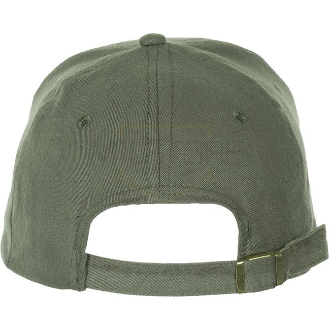 Adjustable olive cap with brass closure, reinforced seams, 6-times quilted visor, and 6 ventilation eyelets. Made with 100% Cotton. One size fits all.