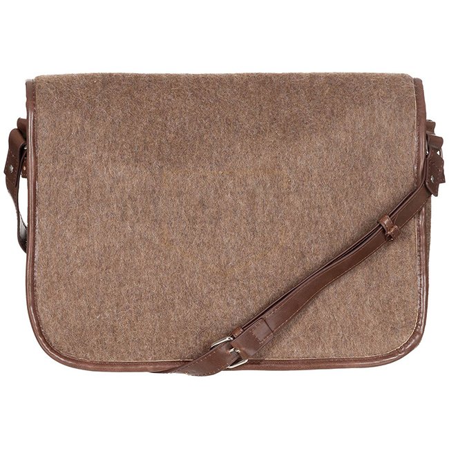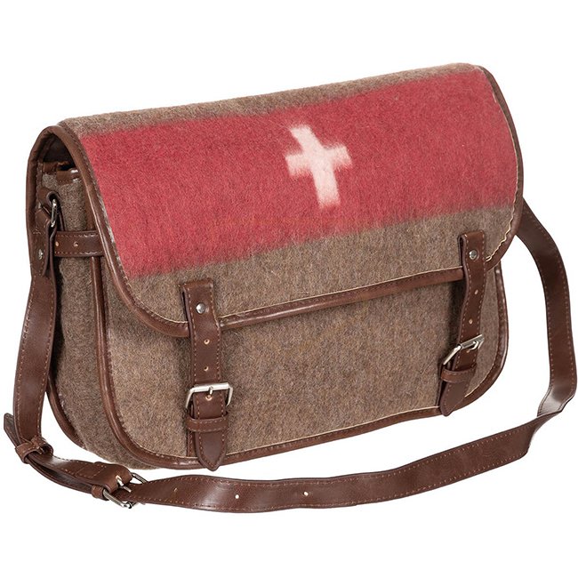 Stylish PureTrash CH Shoulder Bag with vintage-look design. Made from Swiss army blankets and detailed with adjustable shoulder and lateral straps. Features 2 spacious inner compartments, a sleeve pocket, and a zip pocket. Dimensions: ca. 40 x 30 x 10 cm.