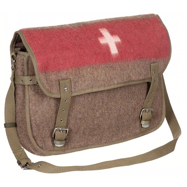 PureTrash CH Shoulder Bag made of Swiss army blankets with adjustable straps, 2 inner compartments, and pockets. Dimensions: approx. 40 x 30 x 10 cm (W x H x D).