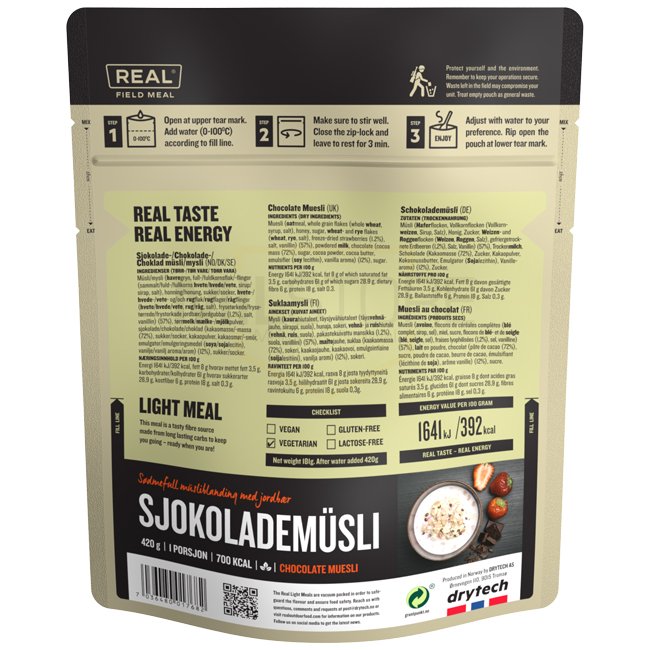 In order to perform during challenging conditions you have to make sure your diet is well balanced, with a sufficient amount of carbs, fat and protein. REAL Field Meal is made by a skillful team of chefs, securing you a nutritious and lightweight meal – easy to prepare and rich in natural flavour.