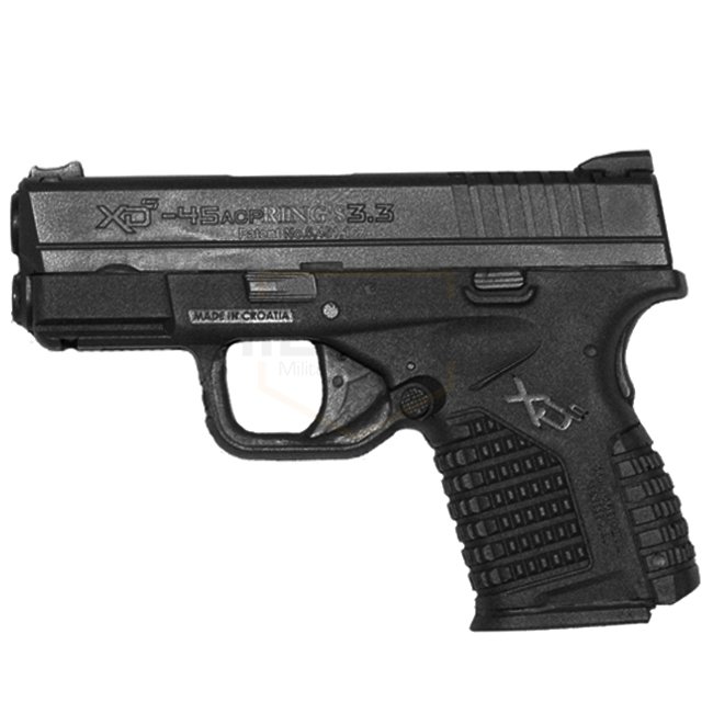 Rings Blue Guns: Springfield XDS 3.3 Pistol - Black - high-quality training replica for police and military. Made of high-impact polyurethane with steel reinforcement for durability and realistic handling.