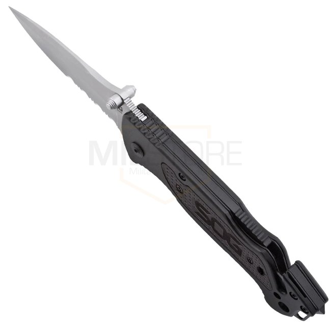 A high-quality pocket knife featuring a satin finish. Lightweight, with a 86mm blade made of 9Cr18MoV, and a total length of 208mm. The handle is crafted from anodized aluminum 6061-T6.