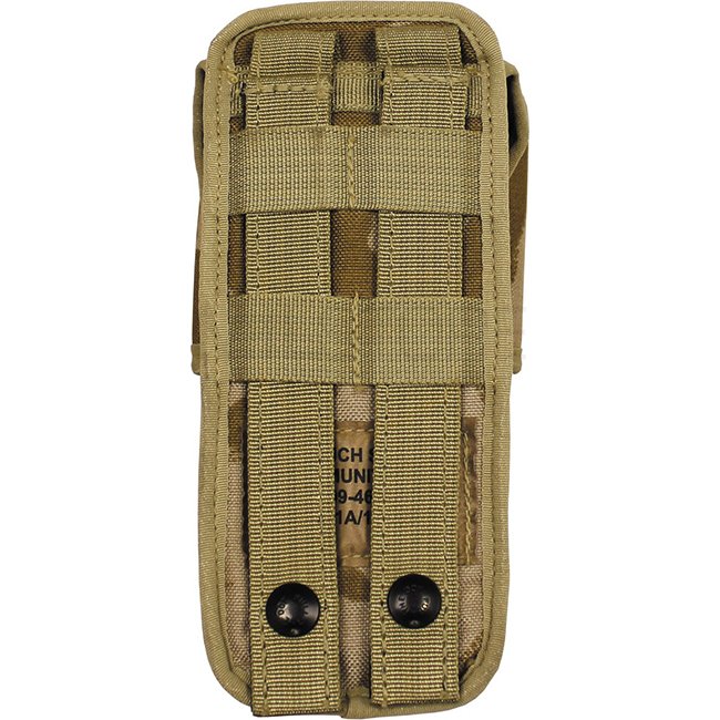 Compact and durable Surplus GB SA80 Magazine Pouch in DPM Desert. Size: 20 x 8 x 7 cm. NSN: 8415-99-461-4940.