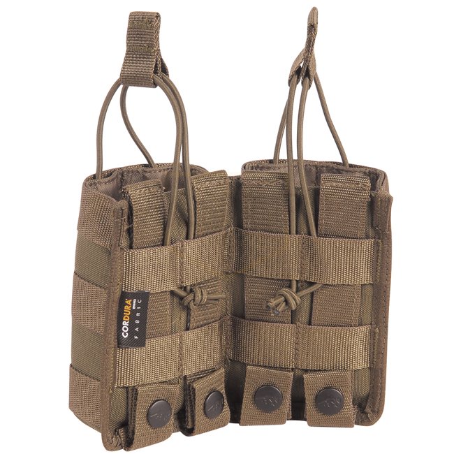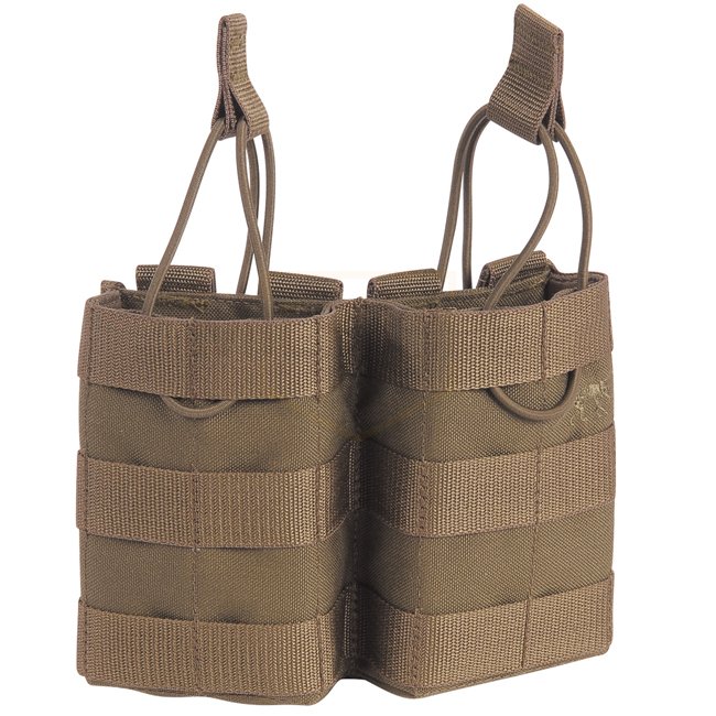 Elastic cord closure, MOLLE compatible 2x magazine pouch for G36, SG550, and AR15. Compact, durable design in coyote color.