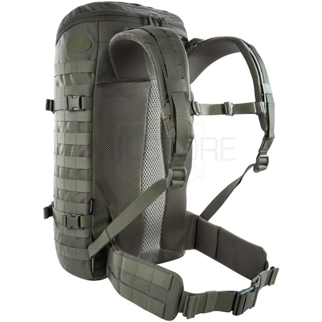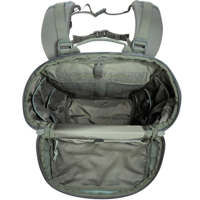 The TT Base Pack Top Load 30 IRR features a stiffened lid that opens forward for efficient access. The upper half of the main compartment allows pouches to be clipped or looped in. Front, lid and sides are equipped with the MOLLE System for modular expansion.