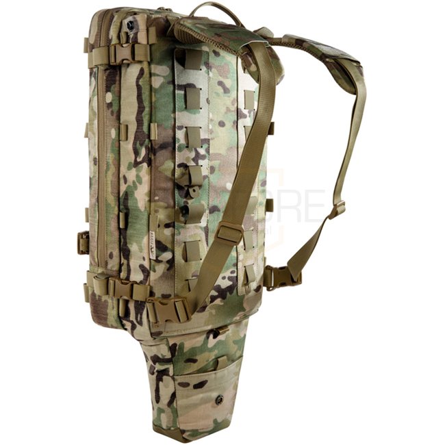 The TT Breacher Pack MC is designed for tactical entry teams. It includes two removable tool tubes that can extend to fit bolt cutters up to 80 cm. The pack can be worn over protective vests or attached directly to plate carriers with the included adapter system. A wrap-around zipper on the front compartment provides full opening and access.