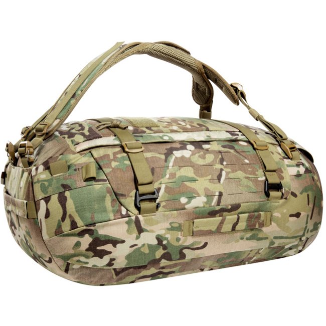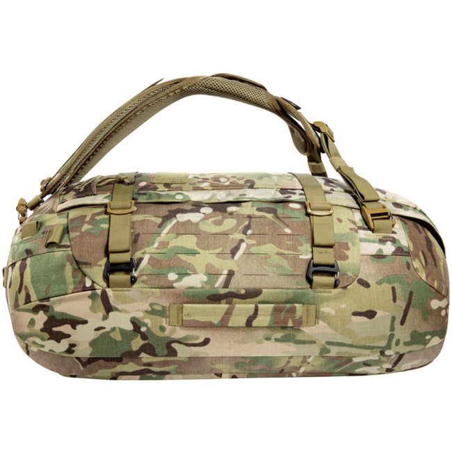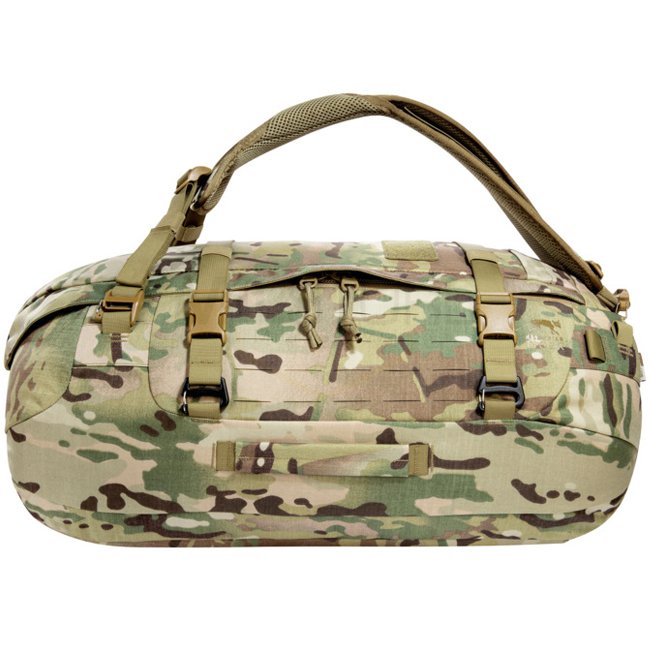 Robust equipment bag made of 500d Cordura with 45 liter volume, detachable shoulder straps, lockable zipper sliders and padded bottom. With MOLLE system on the outside and laser-cut MOLLE.