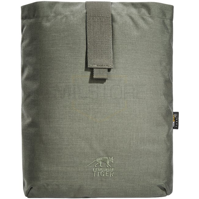 “Dumping pouch” for magazines or other utensils. Made of CORDURA® and material with IRR treatment. Both the European CORDURA® materials as well as web-bing, hook-and-loop fasteners and buckles meet the high German Bundeswehr standards TL 8305-0278 and TL 8305-0281 with regard to the IRR camouflage effect (IRR 650 – 1250nm / 10 – 42%).