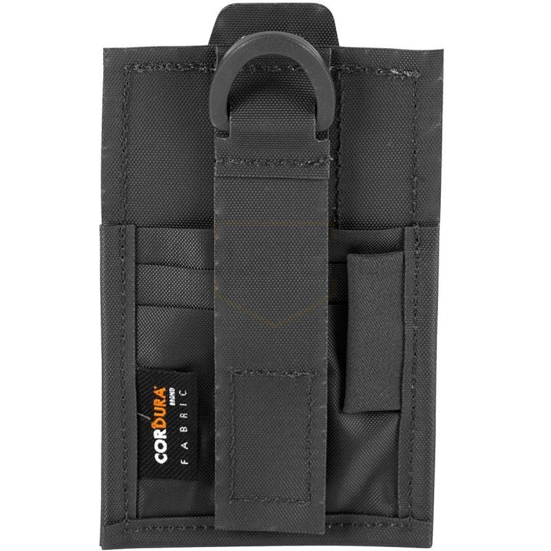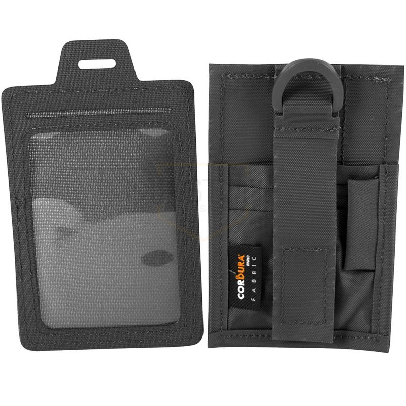 Sturdy combo shell for ID, credit cards, and pen. The ID shell is hooked on and can be removed as needed and used as a patch.