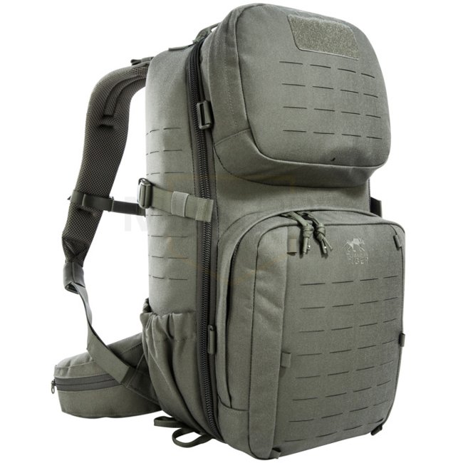 Universal small combat backpack with two attachable pockets and elastic side pockets. Based on the predecessor model, the TT Modular Combat Pack has a clean new look, optimized features and MOLLE hook-and-loop lining in the main compartment for customized modular add-ons. Laser-cut MOLLE on the front and sides mean you can combine it with other gear. With a main compartment that opens completely and the special zipper guides it’s possible to use the pack as a top loader. The shoulder straps can be adjusted in length in order to wear the backpack over vests.