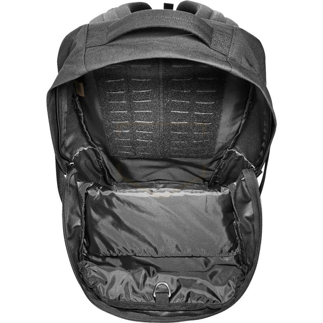 Modular daypack with 23 liters of volume. The backside of the main compartment of the daypack is lined with MOLLE hook panels for attaching compatible loop pouches. It is also designed to hold a 15.4? laptop. The flat zipper front pocket is great for documents while the laser-cut MOLLE on the front and sides allow you to add gear to suit your needs.