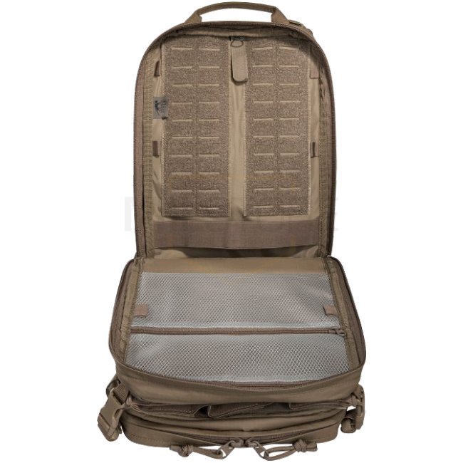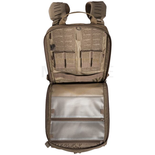 Lightweight, tactical deployment backpack with 14 liter volume for modular use. With three front pockets (partially fold-down or detachable), hydration system preparation, MOLLE hook-and-loop and MOLLE reverse system on the back and plate carrier adapter.