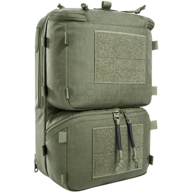 The TT Operator Pack ZP is designed for the TT Plate Carrier QR LC ZP, the attachment is via side zippers. The pack can also be mounted on other plate carriers on the market with the appropriate zipper length and width. In addition, the included zipper MOLLE strip allows it to be attached to plate carriers with the same MOLLE scheme. An additional adapter is included for attachment to classic MOLLE straps. The backpack has a flat main compartment, which is equipped with a hydration system preparation and whose back wall is covered with MOLLE hook-and-loop for individual equipment. It also has two large front pockets. The upper front pocket is equipped with interchangeable magazine inserts. The modular components can also be attached in the main compartment.