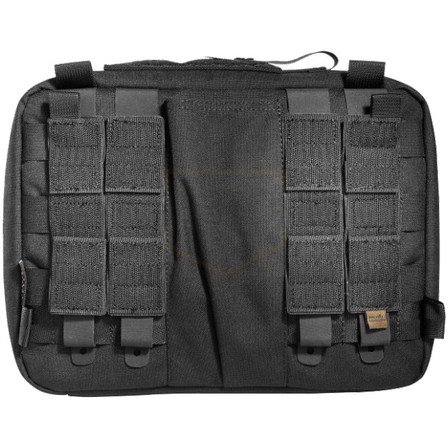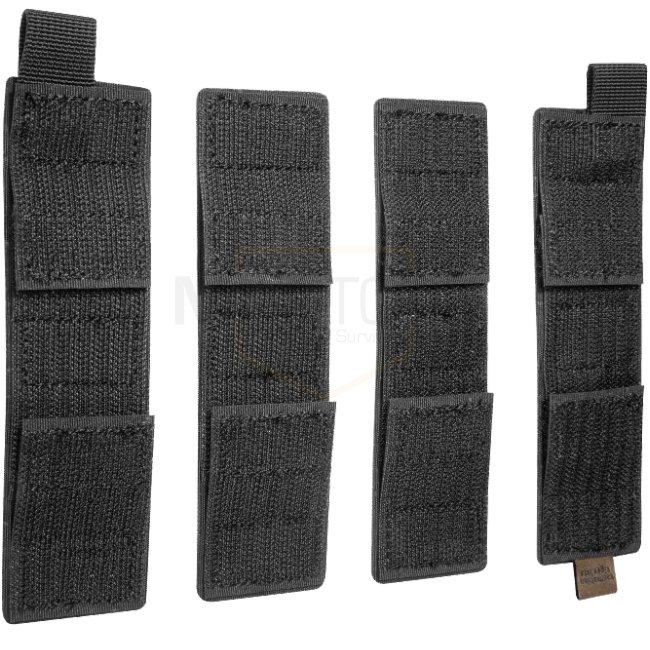 The Tasmanian Tiger SGL MOLLE Adapter Set VL - Black allows you to easily attach pouches with MOLLE systems to hook-and-loop surfaces. Available as a set of 4, this adapter is crafted from CORDURA 700D material, featuring a laser-cut MOLLE system and hook