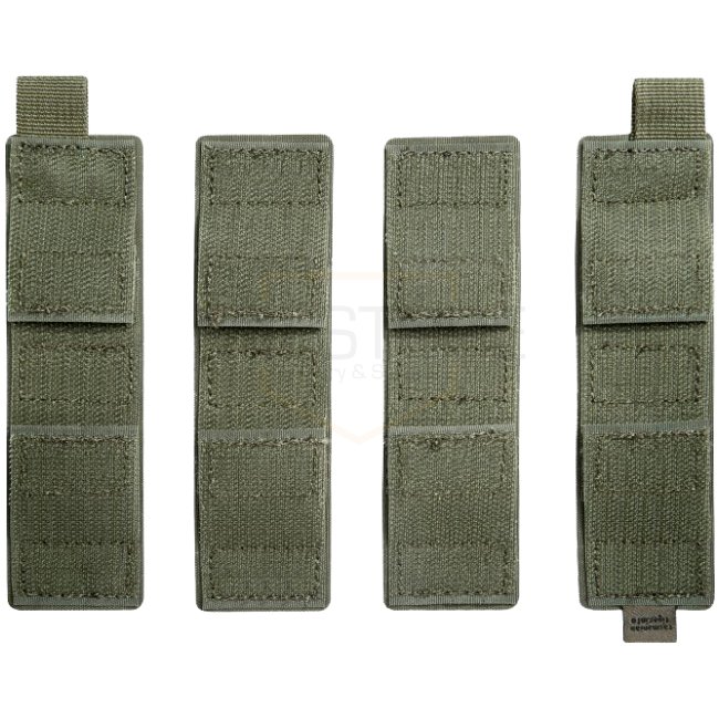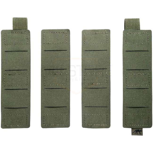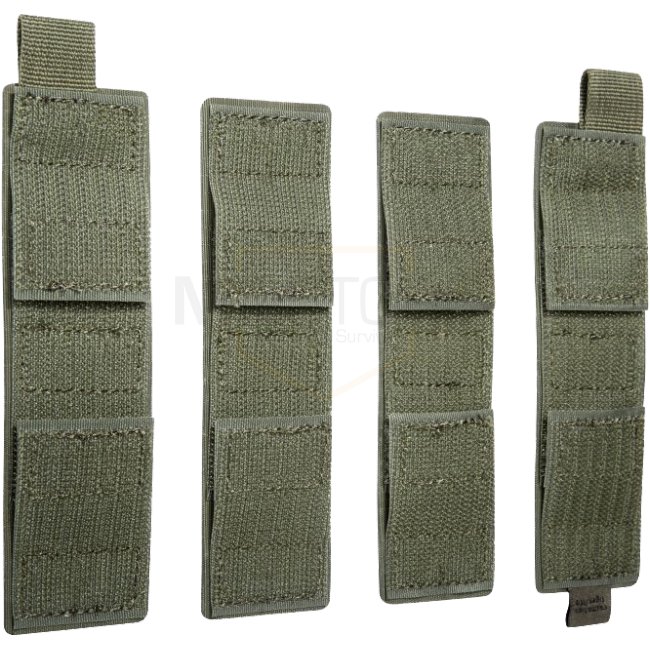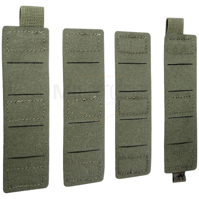 Adapter for attaching pouches with MOLLE systems (or similar) to hook-and-loop surfaces. Also suitable for individual MOLLE strips.