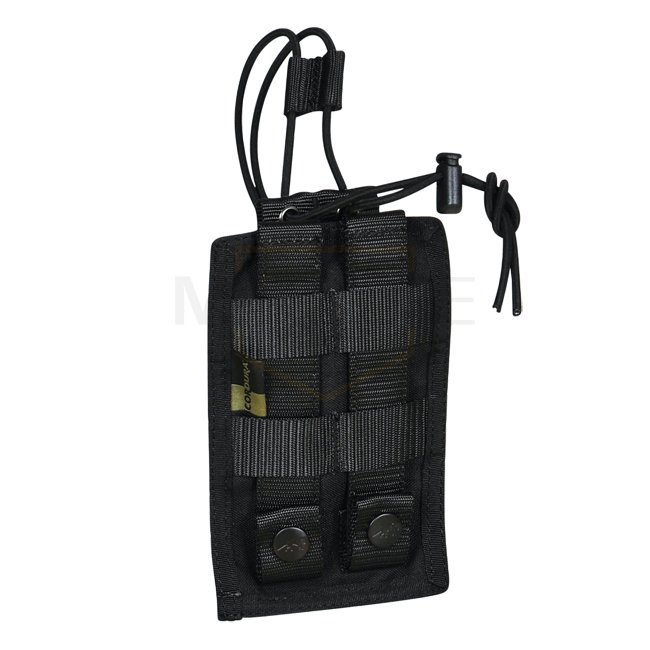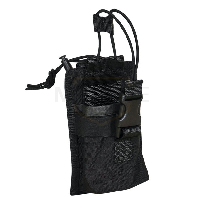 Small universal radio pouch with adjustable elastic loop and side release buckle; MOLLE system; Needs two MOLLE loops