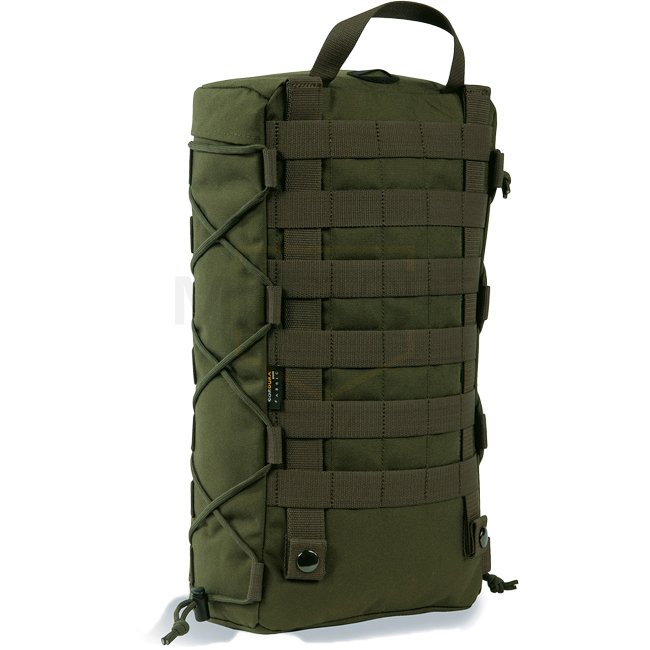 Tasmanian Tiger Tac Side Pouch 9 - Olive: Large volume side pouch for rucksacks. Dimensions 39x21.5x12cm, made of CORDURA 700D. Features Paracord side compression, handle, toploader bag, MOLLE snap button system. Requires five MOLLE loops.